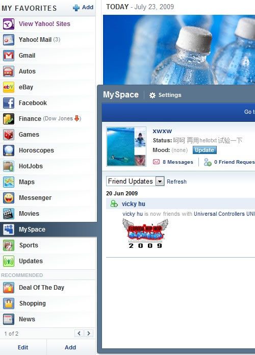 所以為了凸顯門戶網(wǎng)站的搜索特性,所以上面說道搜索部分采用了新的設計。而為了凸顯門戶網(wǎng)站目錄的特性,雅虎這次改版也從新設計了左側(cè)導航。左側(cè)導航不僅可以自定義雅虎本身提供的服務,還可以自定義當下其它站點的服務,譬如ebay,facebook,mysapce等。而這次雅虎最關(guān)鍵的一點不僅是解決定制的問題,而且還試圖解決信息問題。就是說不僅希望用戶可以自定義網(wǎng)站目錄,而且還可以在上面處理這些站點的信息。