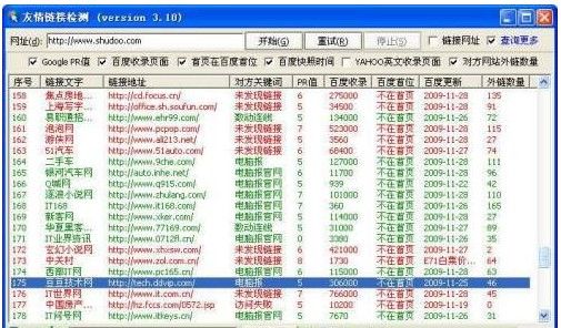 友情鏈接做好不代表萬事大吉,因為也許對方網站會無故取消自己的鏈接,或者對方網站出現了問題,不再適合與自己做鏈接。所以需要經常性地去檢測友情鏈接的有效性。但是網站友情鏈接動輒幾十個,手工檢查太過麻煩??梢允褂靡豢蠲麨椤坝亚殒溄訖z測”的軟件進行自動批量檢測。