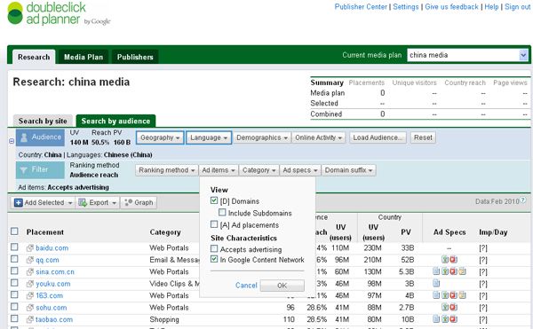 a、通過Google Ad Planaer 及Google Adwords展示位置工具(根據(jù)行業(yè)、描述、網(wǎng)址條件篩選目標(biāo)站點(diǎn)),尋找高質(zhì)量的內(nèi)容網(wǎng)絡(luò)站點(diǎn)。Google Ad Planaer支持國家、地區(qū)、語言、行業(yè)、所支持的廣告規(guī)格等綜合條件來篩選目標(biāo)站點(diǎn)。