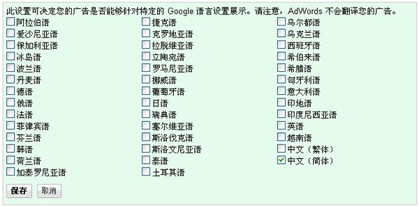 谷歌內(nèi)容網(wǎng)絡(luò)語言定位設(shè)置,直接關(guān)系到你投放廣告的精確性。試想如果您在阿拉伯語系的國家投放西班牙語的廣告,或者您在巴西投放德語廣告,會有什么后果!如果你在投放簡體中文一個(gè)語系的廣告,直接選擇簡體中文語言的配置即可。 如果您在投放多語系的廣告,就需要研究當(dāng)?shù)貒沂裁凑Z言是官方語言。需要注意的是:選擇語言配置后當(dāng)然也要制作針對這個(gè)語言的廣告創(chuàng)意和Landing page頁面。