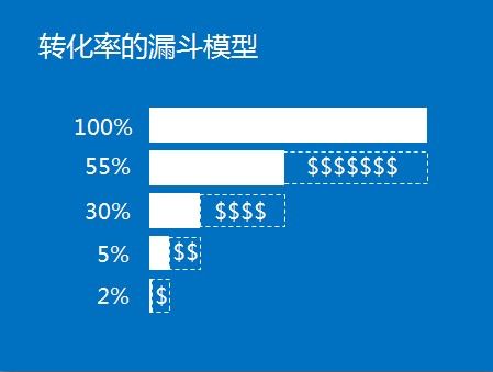 來(lái)看下網(wǎng)站分析中的經(jīng)典漏斗模型。100%的訪(fǎng)問(wèn)者進(jìn)入網(wǎng)站,45%的訪(fǎng)問(wèn)者跳出離開(kāi)網(wǎng)站,這些訪(fǎng)問(wèn)者沒(méi)有機(jī)會(huì)轉(zhuǎn)化為客戶(hù)為你帶來(lái)收入了,同時(shí)你花費(fèi)在他們身上的廣告費(fèi)也打水漂了。只剩下55%的訪(fǎng)問(wèn)者繼續(xù)前進(jìn)。在下一級(jí)頁(yè)面,因?yàn)閷?dǎo)航設(shè)計(jì)問(wèn)題,又有25%的訪(fǎng)問(wèn)者離開(kāi)網(wǎng)站。你失去了這部分訪(fǎng)問(wèn)者的訂單,同時(shí)再一次浪費(fèi)了廣告費(fèi)。繼續(xù)前進(jìn),因?yàn)轫?yè)面內(nèi)容問(wèn)題,轉(zhuǎn)化渠道阻力及流失問(wèn)題,不斷有訪(fǎng)問(wèn)者離開(kāi)網(wǎng)站。最終只有2%的訪(fǎng)問(wèn)者成功下單支付,完成了網(wǎng)站的目標(biāo)。而在這整個(gè)過(guò)程中你損失了98%的訪(fǎng)問(wèn)者,這些訪(fǎng)問(wèn)者可能產(chǎn)生的收入,以及為了獲取這些訪(fǎng)問(wèn)者而支付的廣告費(fèi)。在這個(gè)漏斗模型中,要增加最終的收入有兩個(gè)方法。1獲得更多的訪(fǎng)問(wèn)者,當(dāng)然購(gòu)買(mǎi)訪(fǎng)問(wèn)者是需要花錢(qián)的,并且你依然在浪費(fèi)廣告費(fèi)。這并不能讓你獲得更多的收入。2提升每一步的轉(zhuǎn)化率,降低訪(fǎng)問(wèn)者的流失比例。