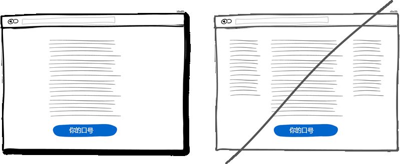 單列布局能夠讓對全局有更好的掌控。同時(shí)用戶也可以一目了然內(nèi)容。而多列而已則會有分散用戶注意力的風(fēng)險(xiǎn)使你的主旨無法很好表達(dá)。最好的做法是用一個(gè)有邏輯的敘述來引導(dǎo)用戶并且在文末給出你的操作按鈕。