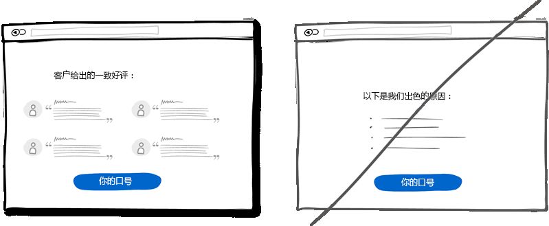 多次重復(fù)主旨口號這種方法適用于界面很長或者分頁的情況。首先你肯定不想滿屏刷出相同的信息,這樣會讓人生厭。但當(dāng)頁面足夠長的時(shí)候這些重復(fù)就顯示自然多了并且也不顯得擁擠。所在在頁面頂部放一個(gè)按鈕然后在頁面底部再適當(dāng)放個(gè)突出的按鈕的做法沒有什么不妥。這樣當(dāng)用戶到達(dá)頁面底部在思考接下來該做什么的時(shí)候,你提供的按鈕就可以獲得一個(gè)潛在的合同或者即使用戶不需要你的服務(wù)這個(gè)按鈕也可以起到過濾的作用。