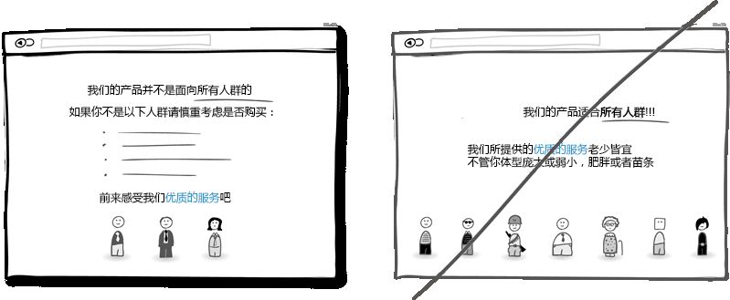 你是想把產(chǎn)品做成大眾化的呢還是有精確的適用人群?在產(chǎn)品定位上你需要更精確些。通過不斷了解目標(biāo)客戶的需求及標(biāo)準(zhǔn),你能把產(chǎn)品做得更好得到更多與客戶交流的機(jī)會,并且讓客戶覺得你很專業(yè),在這方面是獨(dú)家提供的優(yōu)質(zhì)服務(wù)。把產(chǎn)品定位得精確的風(fēng)險(xiǎn)就是可能縮小了目標(biāo)潛在客戶的范圍,也使自身變得不那么全能。但這種做得更專業(yè)的精神卻反過來會贏得信任,權(quán)威。