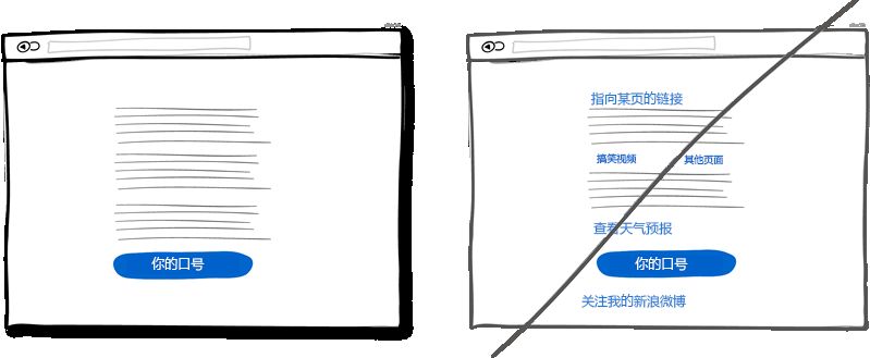 為了滿足各式用戶的需求,在頁面上放些鏈接鏈到這里鏈到那里是常見的做法。如果你的主要目的是想讓用戶點(diǎn)擊頁面最后那個(gè)下載按扭什么的話,就需要三思了。因?yàn)橛脩艨赡茳c(diǎn)擊了其他鏈接離開頁面了。所以你需要注意頁面的鏈接數(shù)量,最好將用于導(dǎo)航與用于操作的鏈接用樣式區(qū)分開。盡量移除頁面不需要的鏈接會讓用戶點(diǎn)擊到你的功能按鈕。