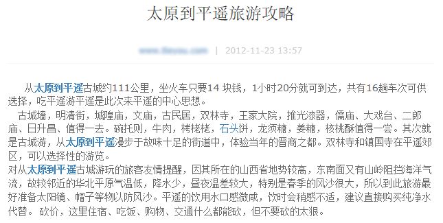 3,選擇能滿足用戶明確需求的關(guān)鍵詞:能體現(xiàn)用戶明確需求的關(guān)鍵詞往往字?jǐn)?shù)偏長,SEO人員一般稱此為長尾關(guān)鍵詞,如“杭州兩日游路線”“從上海到西塘怎么走”等。我們的產(chǎn)品人員和編輯應(yīng)該一方面了解用戶需求,一方面制作可以滿足用戶需求的網(wǎng)頁,通過將含有用戶明確需求的關(guān)鍵詞寫在標(biāo)題上來吸引搜索引擎用戶的點擊。