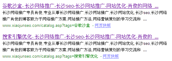 2、博客標(biāo)簽可以提高博客谷歌收錄數(shù)量,也能一定程度上提高博客在谷歌的權(quán)重:我的網(wǎng)絡(luò)推廣博客在谷歌的排名由最初的八十多名,然后上升到首頁,現(xiàn)在關(guān)鍵詞“長沙網(wǎng)絡(luò)推廣”排名谷歌第一位,而另一個(gè)關(guān)鍵詞“長沙SEO”谷歌排名從之前的九十多名到現(xiàn)在三十幾名,“長沙網(wǎng)站推廣”也排到了谷歌的第23位,和之前的排名情況相比,幾個(gè)關(guān)鍵詞的排名都有所上升。
